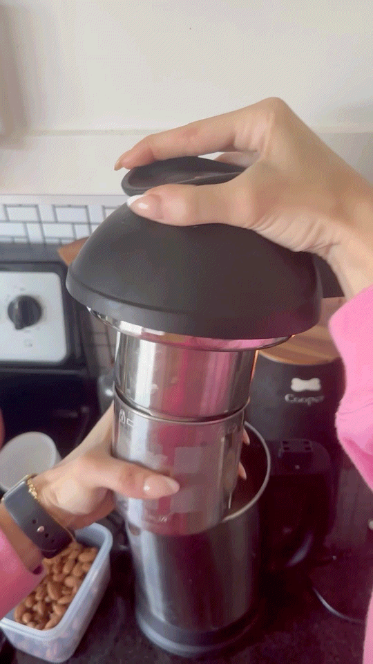 As touched on above, what I like most about the Almond Cow Milk Maker Machine is how ridiculously easy it is to use. Once you’re familiar with the steps, you can turn a bag of almonds into almond milk in under five minutes (I’m not exaggerating). To make my almond milk, I gathered all of my ingredients (almonds, water, salt, and honey for a little sweetness) and added them to the machine’s filter basket. After that, I filled the base of the device with water (specifically, to the indicated water line), before clipping the basket into the base.